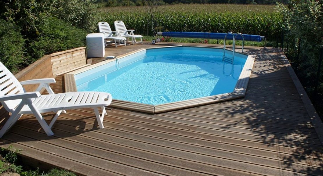 На вирівняній дерев'яній площадці зручно розміщувати лежаки, шезлонги або навіть організувати бесідку, аби підвищити практичність дощок, варто покрити матеріал лаком або обробити протигрибковим засобом для дерева. Цікавим варіантом розміщення дерев'яного настилу буде його піднесення над басейном і додавання широкої дерев'яної сходу, що веде до води. На ступеньках конструкції дуже зручно відпочивати.