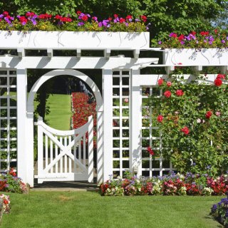 Одна з найпопулярніших конструкцій на ділянці для повзучих рослин. Вона може бути як самостійним декоративним елементом, так і надійною опорою. Решітчасте спорудження служить хорошою основою для троянд, винограду, клематису та лимонника.