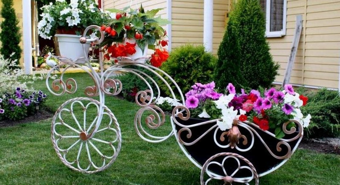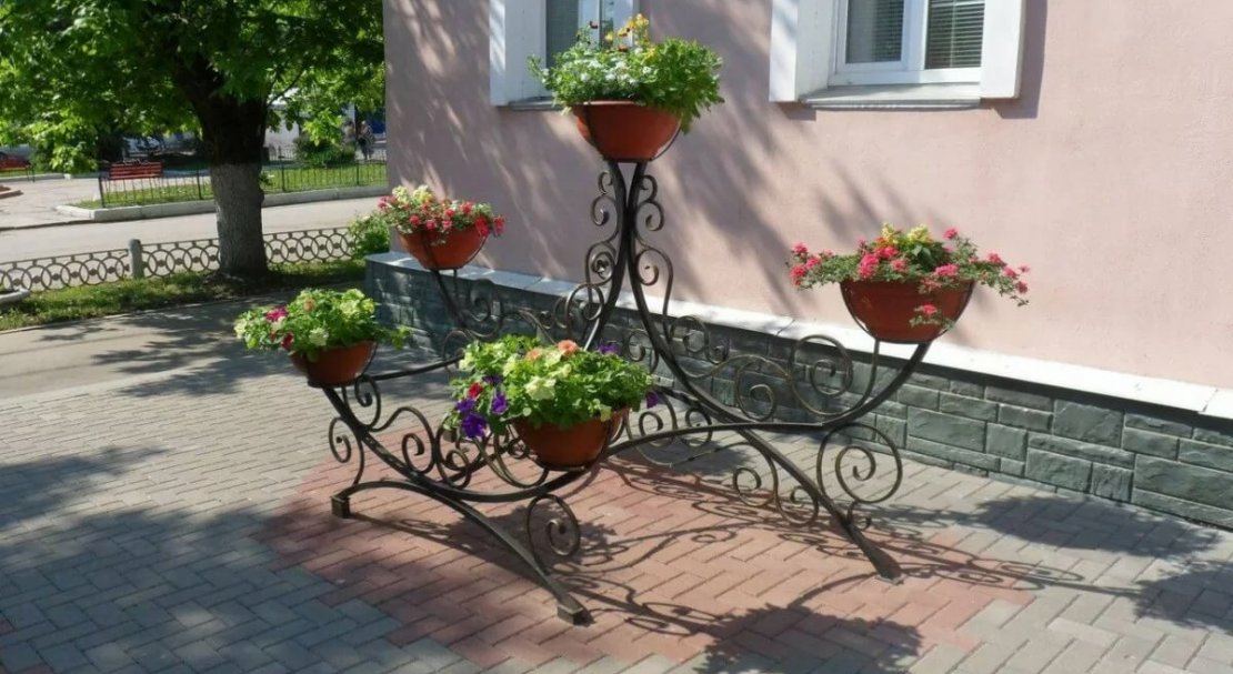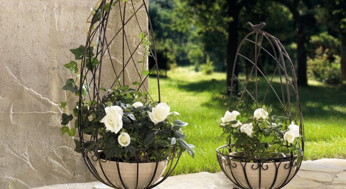 Дуже ефектно виглядають різноманітні ковані вироби, на які підвішуються кашпо з ампельними видами рослин.
