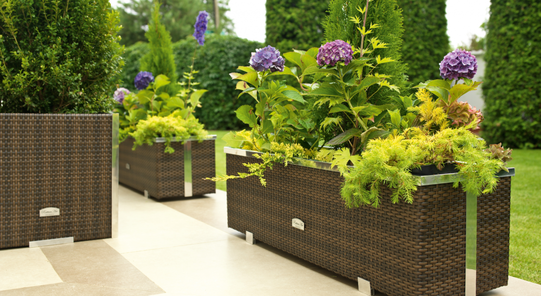Рослини, вирощувані в ємностях на висоті, отримують все більше поширення в ландшафтному дизайні, оскільки вони дуже мобільні. До таких контейнерів відносяться кошики, кашпо, горщики.