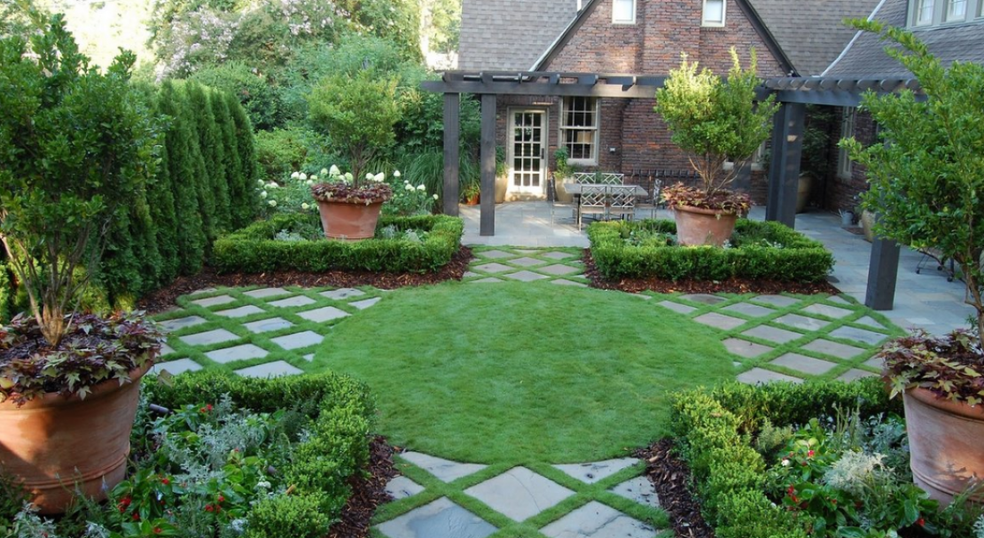 Традиційний, або класичний, стиль сягає до королівських садів Версалю. Це мармурові статуї, розкішні яскраві квіткові ложа, мозаїчні доріжки, обрізані невисокі живі парки та газони, а також велика кількість фонтанів. Сучасна естетика такого саду трохи більш функціональна. Тут зустрічаються найзвичайніші матеріали — цегла, камінь, кам'яна бруківка та дерево. Головною метою стало створення відкритого простору для приємного відпочинку з друзями на свіжому повітрі. Але такі елементи, як використання геометричних фігур, створення симетрії і включення повторюючихся візерунків — залишились до наших днів.