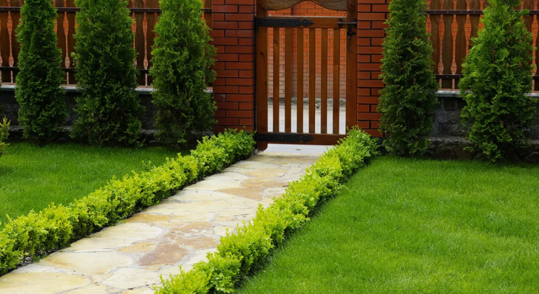 - Арки в далекому кінці алеї візуально подовжують лінії вгору, що візуально збільшує ділянку.
