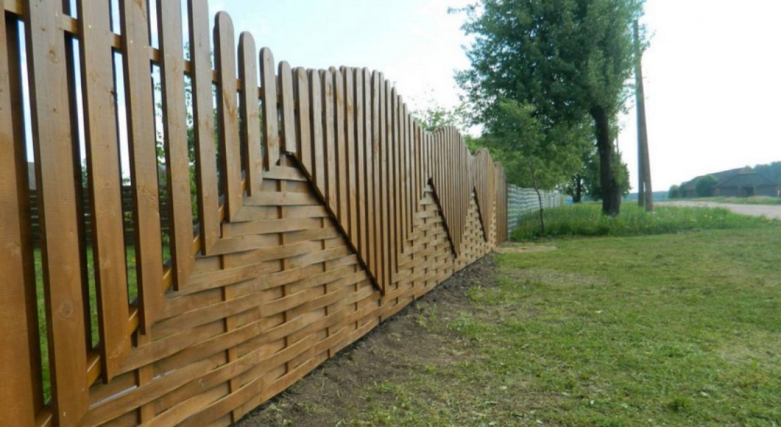 - дерев'яний паркан з штахетника, необрізної дошки або тонких переплетених рейок, який добре виглядає на ділянці в стилі кантрі або прованс. Надійне кріплення такому паркану забезпечить встановлення бетонних стовпчиків. Невироблена деревина прослужить до 15 років, а її просочення може подвоїти термін життя такого паркану;
