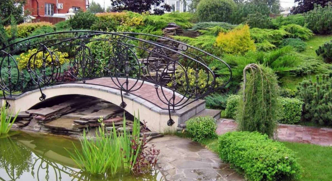 - Великі декоративні елементи - представлені штучними водоймами, альтанками, огорожами та іншими конструкціями.
