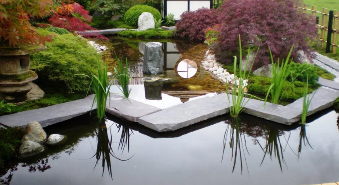 - декоративний водойм — більш глибокий, ніж попередній варіант, але схожий за призначенням, зазвичай доповнюється містечками, підсвіткою, фонтанами;