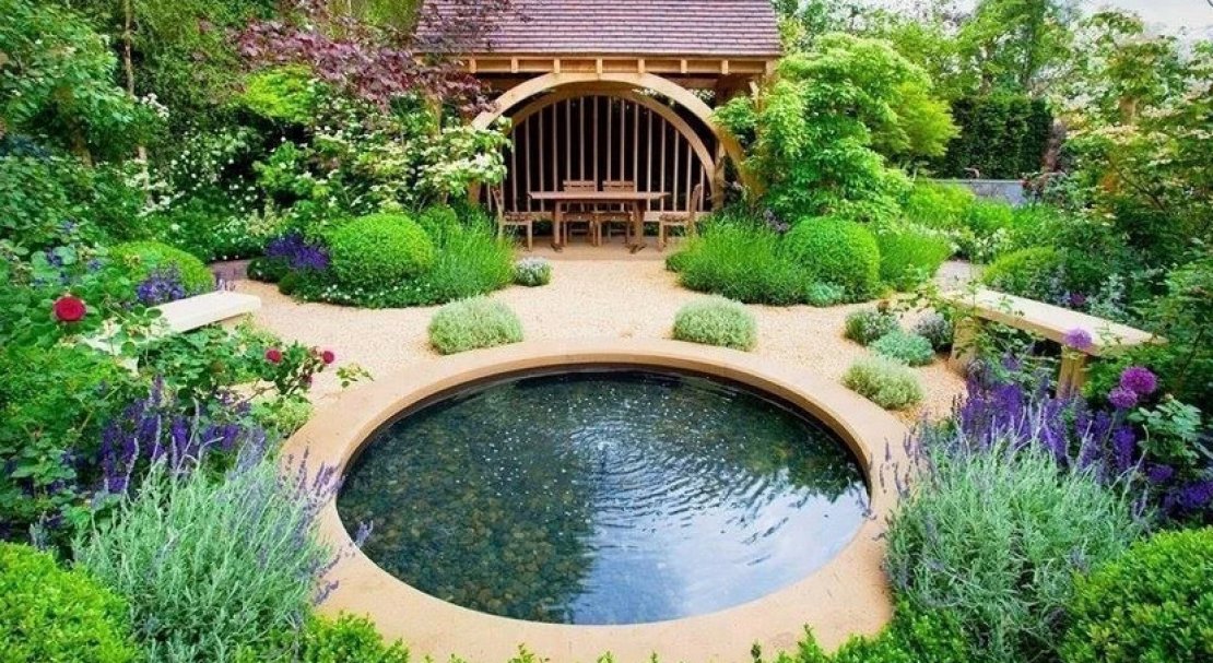 ![Альтанка з водоймом в ландшафтному дизайні Альтанка з водоймом в ландшафтному дизайні]()