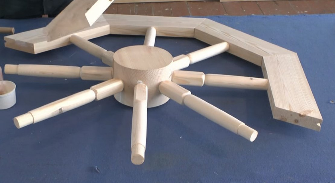 Як спиць використовують дошки, що були виготовлені раніше за вищезазначеною схемою. У деяких випадках їх можна зробити з інших, більш вишуканих заготовок за допомогою професійних станків. Але така робота забере більше часу і вимагатиме вміння працювати з токарним обладнанням.
