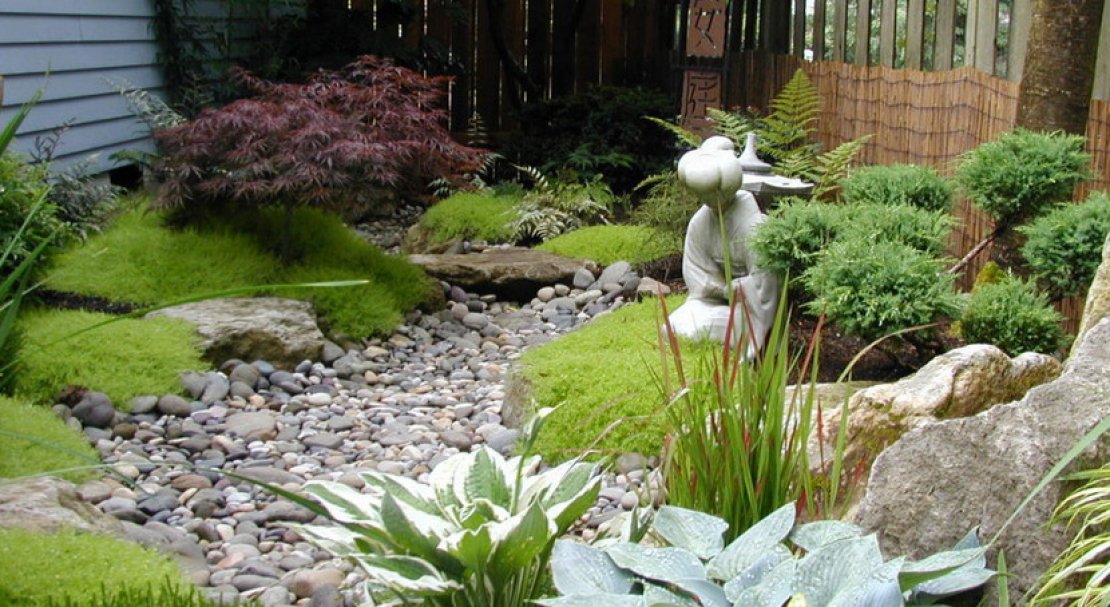 Вишуканим варіантом прикраси ділянки може стати сухий русло. Цей вид декорування простору перейшов у сучасний ландшафтний дизайн із Японії. Виглядає такий елемент на кшталт природного русла, викладена галька плавно зігнута лінія, вздовж якої посаджені різні рослини, що надають натуральність декоративній деталі. Це дизайнерське рішення створює атмосферу спокою та заспокоєння під час оздоблення території.