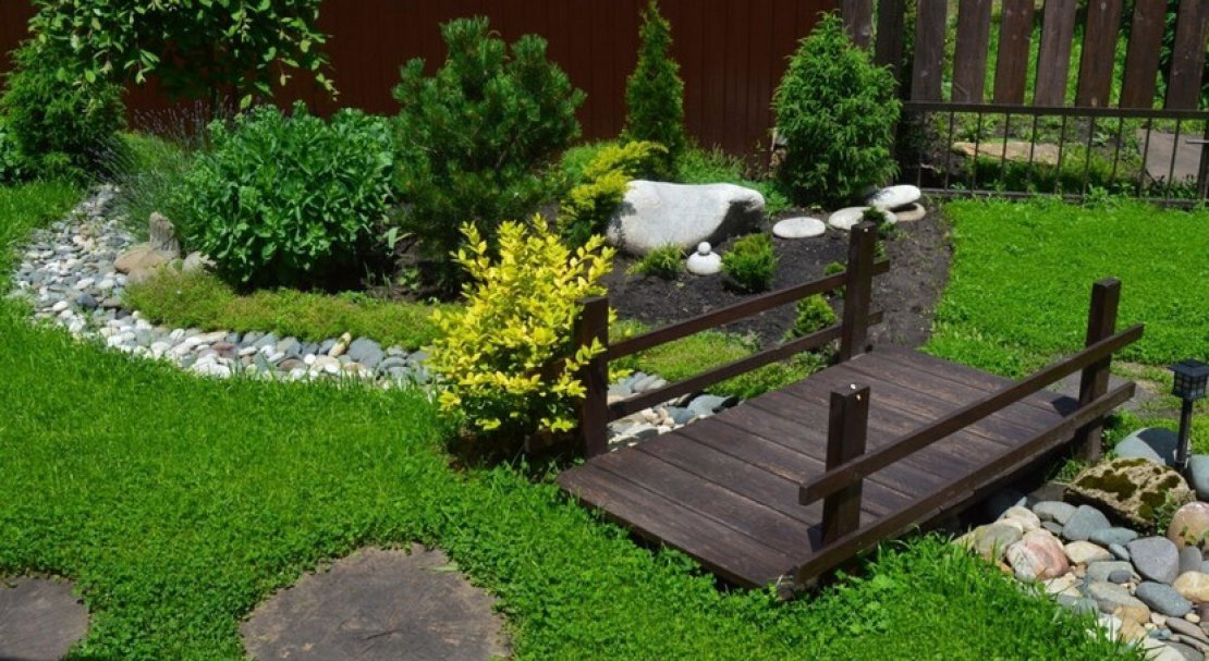 Дерев'яна конструкція повинна бути готова і добре закріплена. Після укладання щебеню кріпильні частини демонтувати буде складно. На ринку у різних садових центрах є готові дизайнерські рішення, придбати місток, що відповідає стилю, можна і в таких магазинах. Але простіше підібрати матеріал безпосередньо на місці, розглядаючи різні варіанти - до остаточного прийняття рішення стосовно кольору і поєднання з камінням.