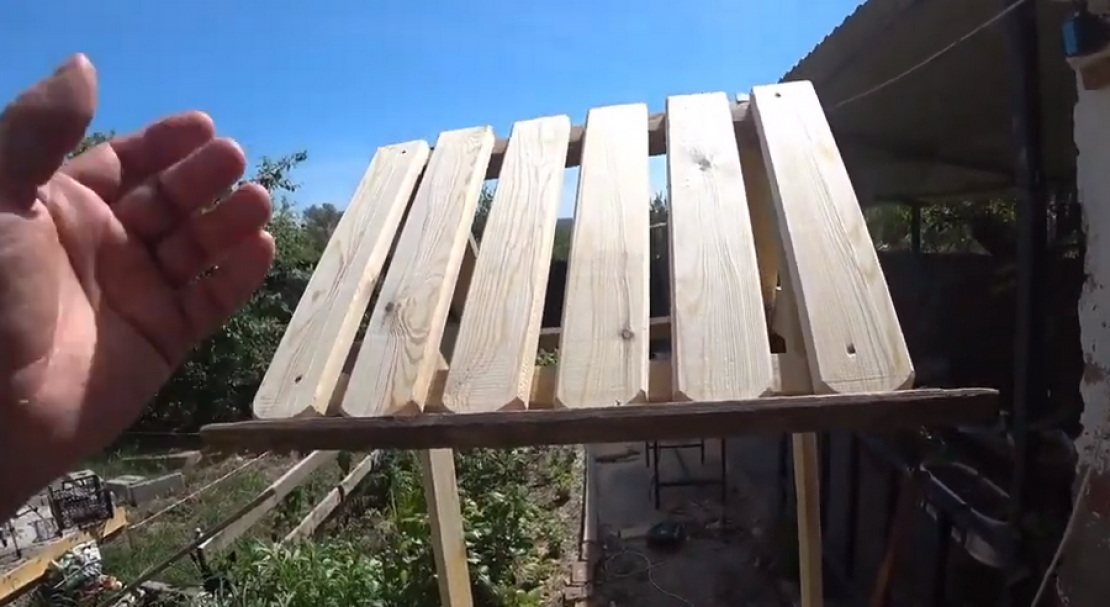 - Далі слід смоделювати каркас даху, заздалегідь визначившись з розміром. Дошки пиляють на рівні частини і набивають на прямокутну основу, що складається з 4 брусків.
