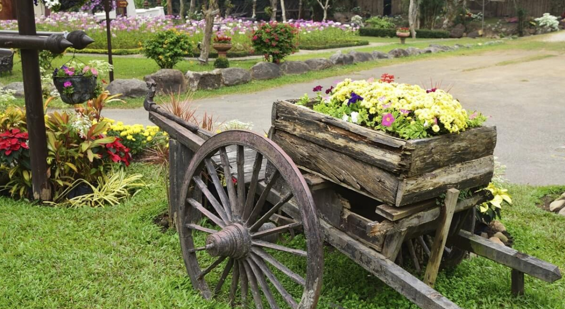 Садові меблі повинні бути зручними й доступними. Все може знадобитися — від дерев'яних лавок, які прослужили багато років, грубих столів і старих табуреток. Найкраще такі меблі виготовити власноруч. Застосовуючи прості прийоми, без особливих витрат можна перетворити свою дачну ділянку в затишний і зливаючийся з природою куточок. Доглядати за куточком в стилі кантрі зовсім не складно. Найпростіші підручні засоби допоможуть оновити подібний сільський ландшафтний дизайн.