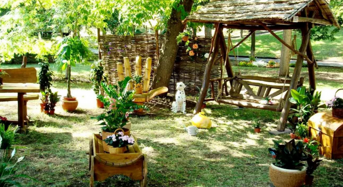 - Застосування сільських аксесуарів. Таке подвір'я хоч і просте, але відрізняється своїми прикрасами без зайвостей, предметами ручної роботи.