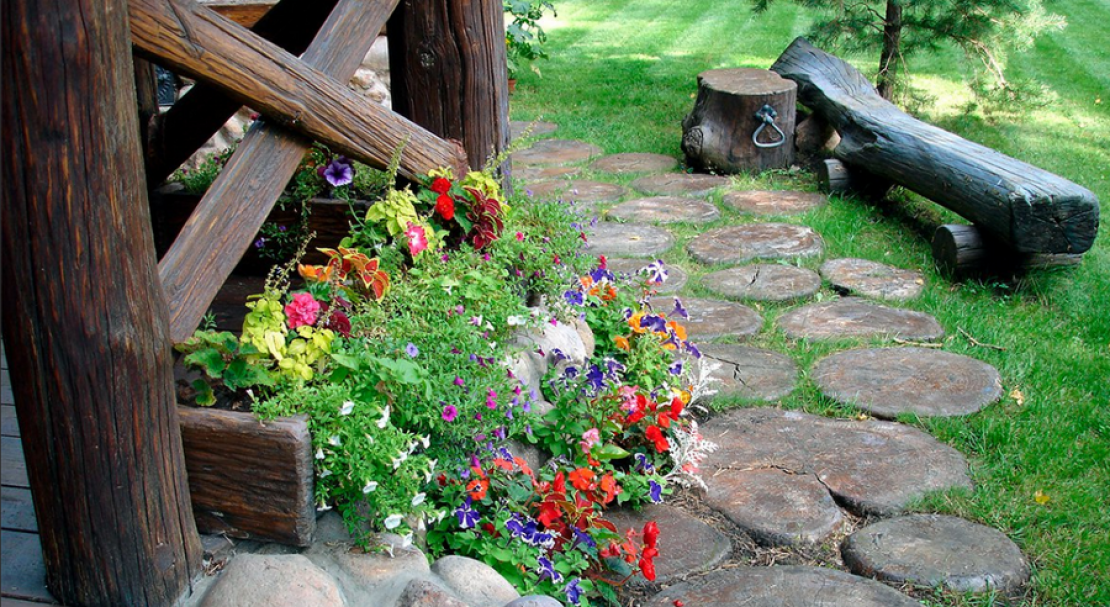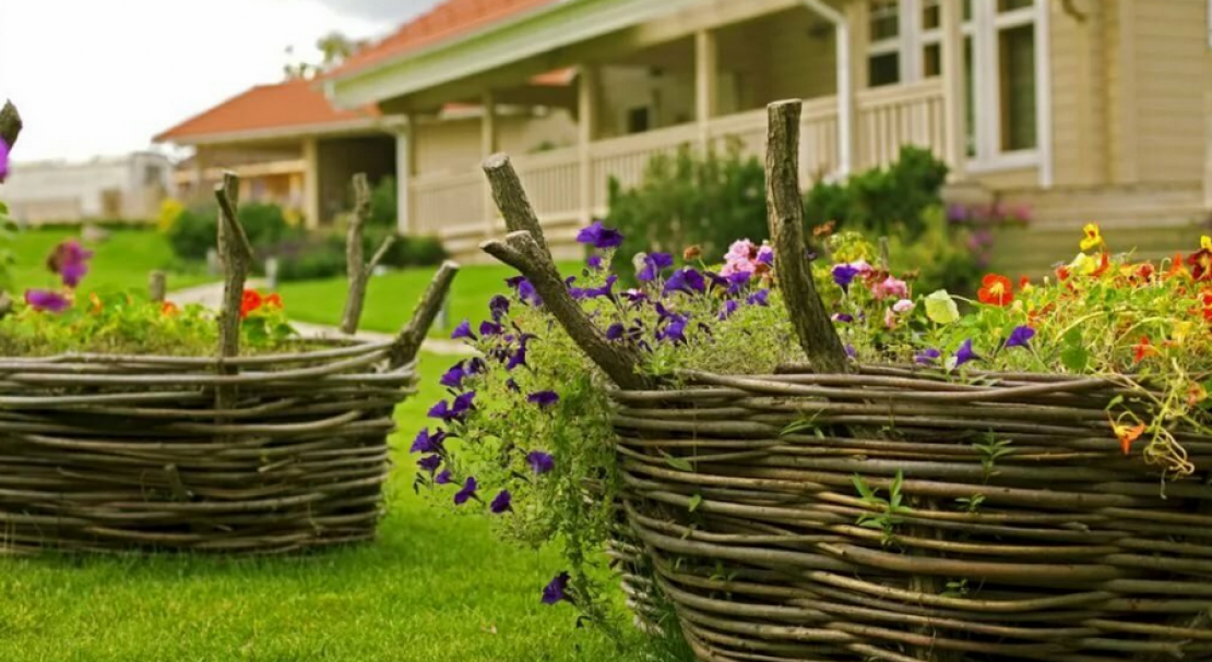 - Використання доступних природних матеріалів. Будинок або ділянка в стилі кантрі не приймають штучних артефактів, кольорового пластику. Йому підходить невимушеність, легка небажаність. Стрижені газони, рівні стежки, відполіровані булі, фарбований гравій — це не для дачного дизайну. Такий декор подвір'я та саду має зливатися з природою, стати її узгодженою частиною.