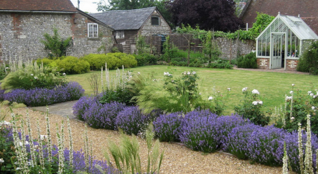 Часто для цього стилю використовується, крім яблунь і груш, висадка персиків. Обов'язковим атрибутом вважається наявність лавандової грядки чи кількох кущів. Часто серед квітів і трав розставляється стара глиняна посуда. Кожен предмет у такому саду повинен мати сліди старості, потертості. Поблизу квітника можна поставити старовинне дерев'яне колесо від воза.