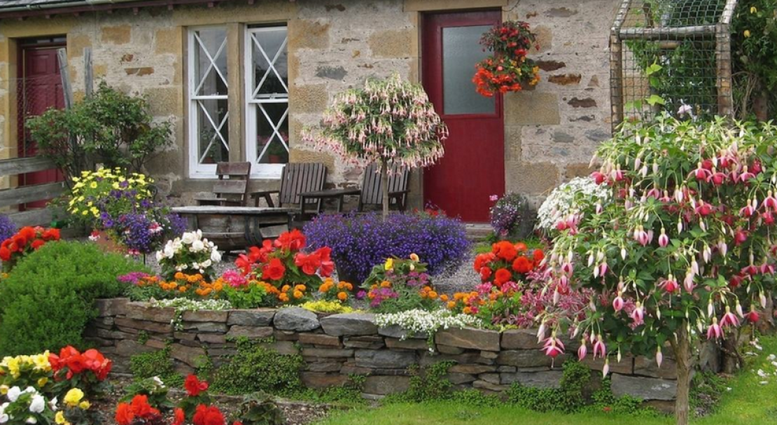 - Створення романтичної обстановки. Стиль кантрі в ландшафтному дизайні має мати трогательний і простий вигляд. Створити його можна посадкою багаторічників різних кольорів і рівнів, за якими не потрібно доглядати особливо.