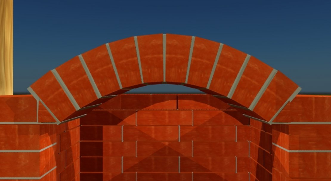 Приблизно з 17 ряду варто почати формування свода. Бажано зробити шаблон з картону, щоб красиво викласти арку. Також можна зробити макет із дошок і підкласти його під блоки. Навіс необхідно висунути на 5 см вперед. До 21 ряду слід провести перекриття свода жарильної камери згідно з схемою.