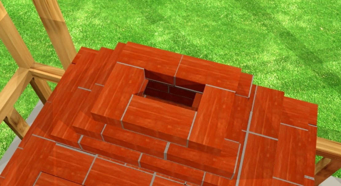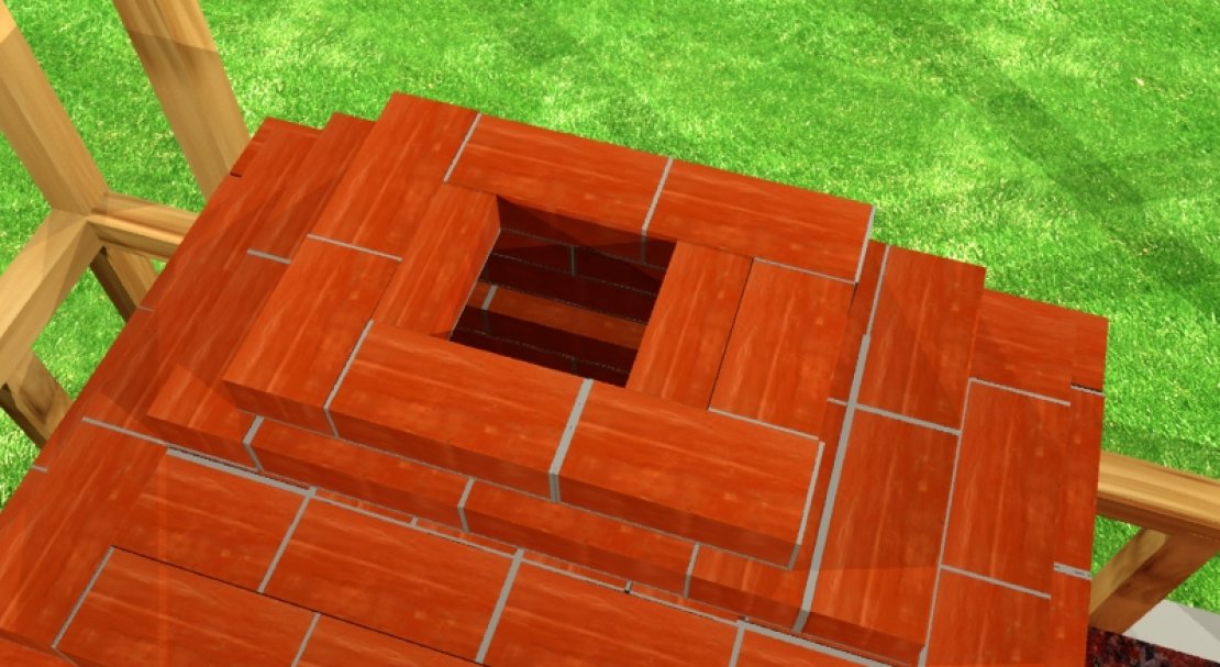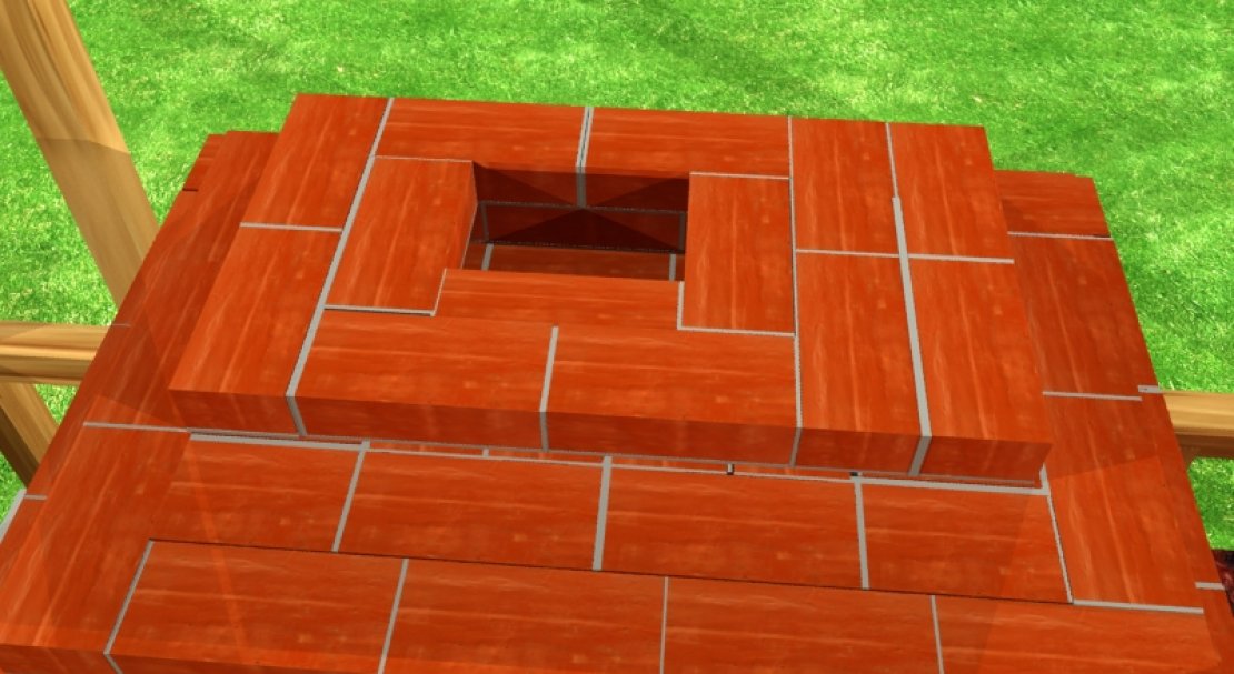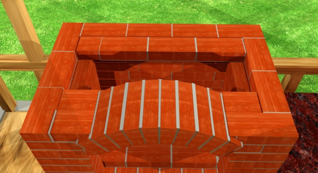 Навіс потрібно викласти по всьому периметру печі. Переплітку кутів варто виконувати, враховуючи підрізку блоків за розміткою. Після повного перекриття свода слід приступити до кладки димового канала. Його необхідно звузити до запланованого розміру. Кладку здійснюють згідно з порядком. Закінчення димоходу повинно відбутися на 27 ряду.