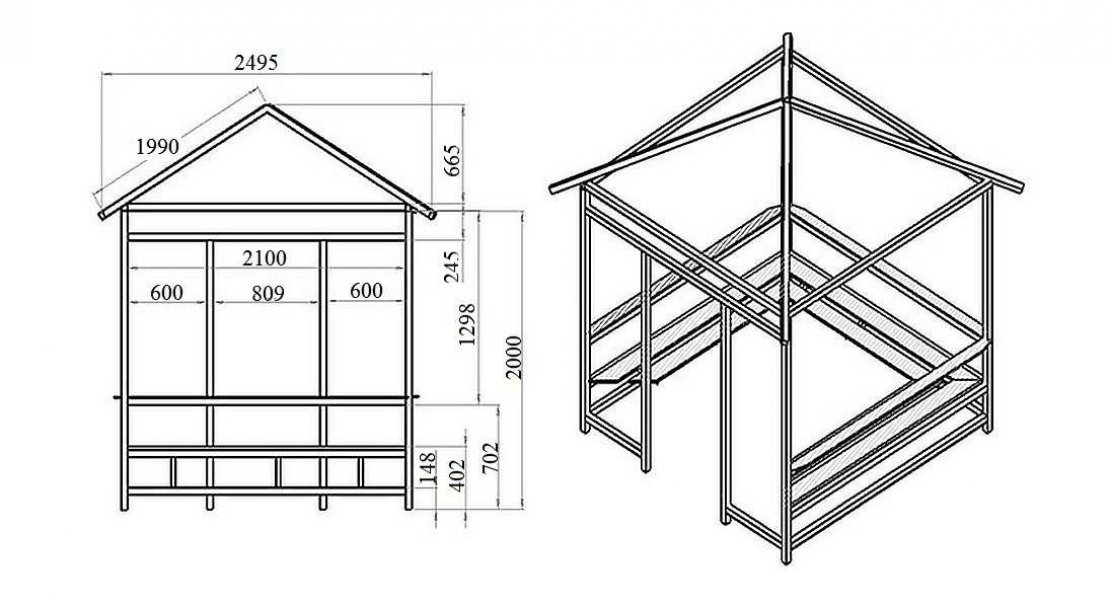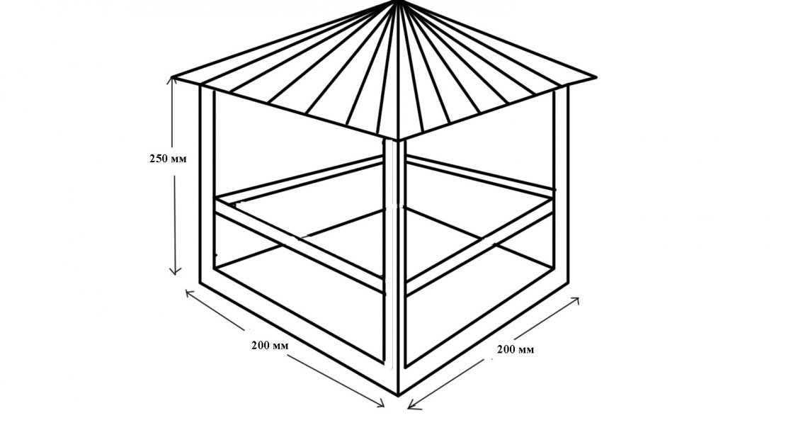 Якщо ви не плануєте використовувати бесідку в холодну пору року, можна її побудувати з дерев'яного бруса сеченням 100×100 мм, підійде також металопрофіль чи арматура. Можна залити класичний стрічковий фундамент.