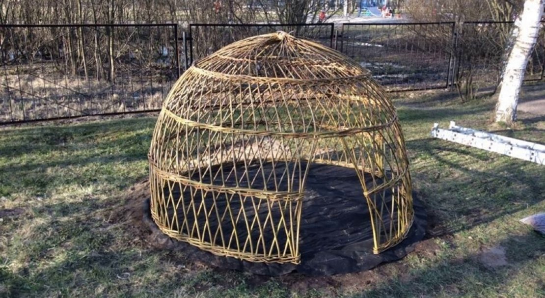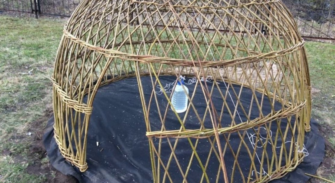 Спеціалісти радять плести окремо стінки об'єкта і дах, а потім об'єднати їх в єдину конструкцію.