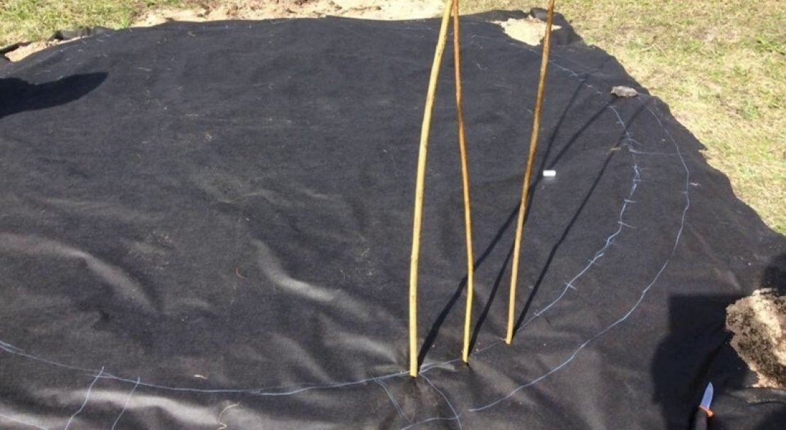 Такий метод використовується для виготовлення даху бесідки, а матеріал від дощу можна захистити за допомогою поліетиленової плівки.
