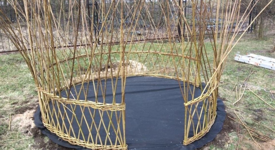 Після того, як буде обраний відповідний матеріал для плетіння бесідки, необхідно його виготовити в достатній кількості, відсортувати (для зручності), обміркувати і підготувати ділянку під конструкцію, спорудити каркас, до якого будуть кріпитися окремі частини бесідки. Ці заходи дуже важливі. Вони допоможуть подальшому прискорити та полегшити роботу.