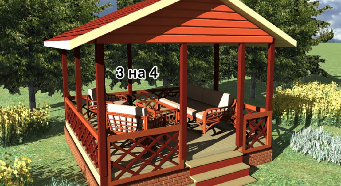 - 3×4 м. Така конструкція вмістить до 12 осіб, прямокутна форма проста у монтажі;