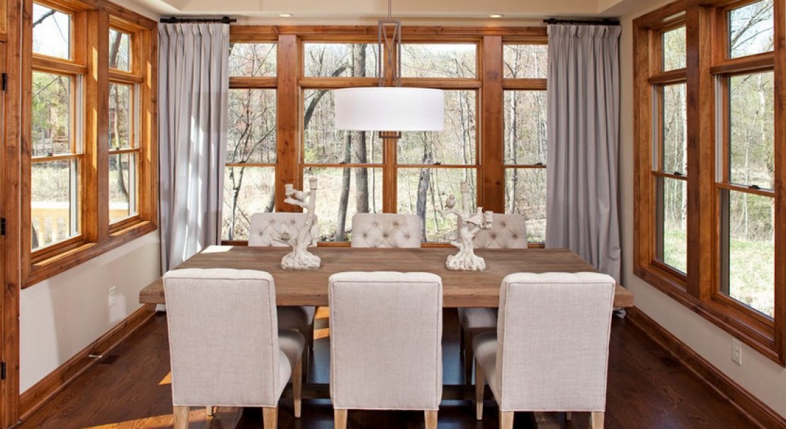 - Невелику кухню або їдальню. Можна доповнити приміщення дерев'яним столом і стільцями, освітлювальними приладами. Стіни і вікна прикрасити виробами з натуральних тканин, картинами, кімнатними рослинами.