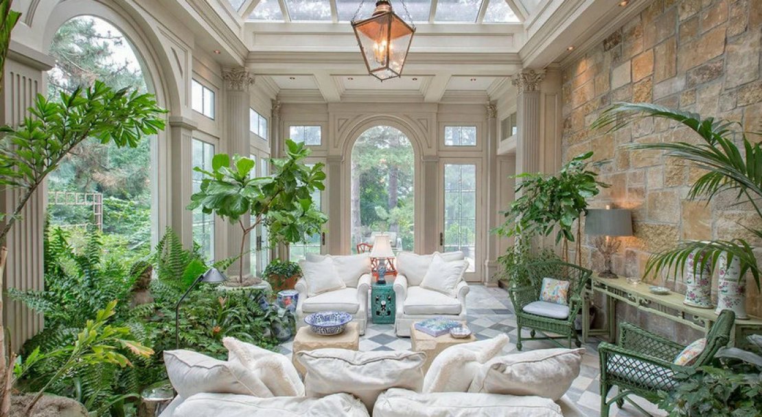 - Зимовий сад. Для облаштування сада необхідно організувати якісне природне світло, одним з варіантів якого може стати скляний дах.