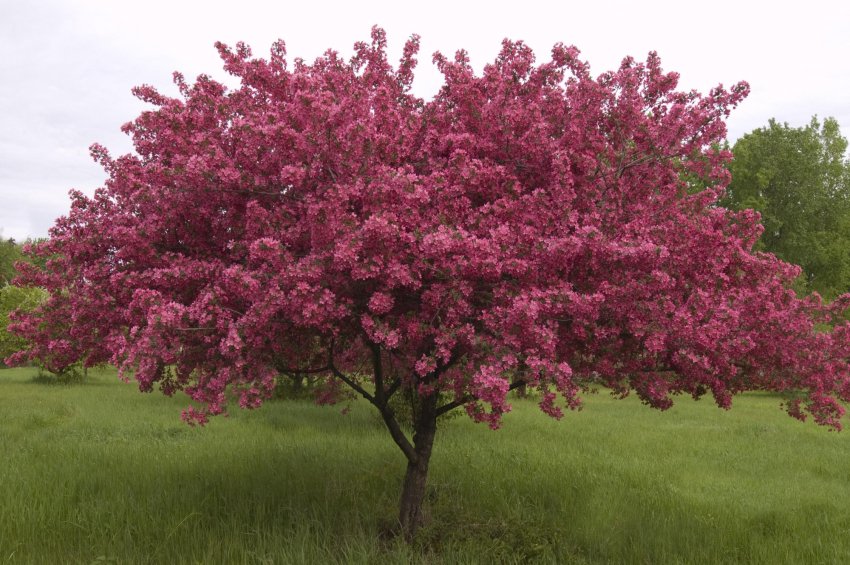 Садові декоратори рекомендують зупинити свій вибір на сорті декоративної яблуні "Роялті" (цвіте яскраво-рожевими квітами) або на компактній "Malus sargentii".