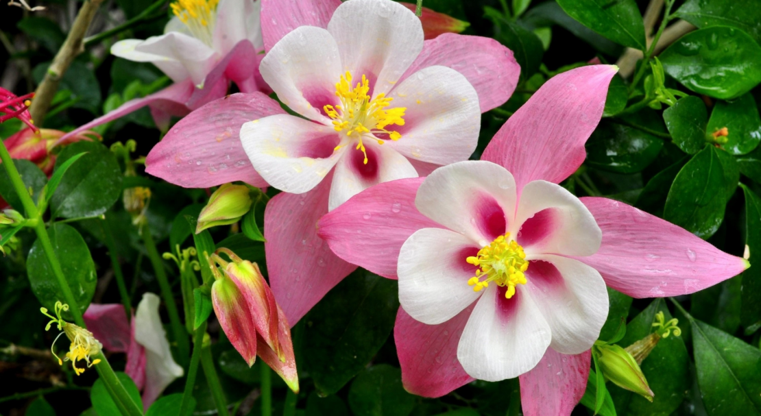 Аквілегія зростає до 0,8 м у висоту. Квіти можуть бути двокольоровими. Тривале цвітіння досягається при посадці на затінених ділянках саду. Розмножується квітка самосівом.