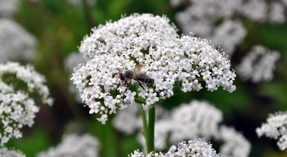 Валеріана росте до 1,7 м у висоту, цвіте ароматними блідо-рожевими дрібними квітками. Живе в добре зволожених місцях, віддає перевагу сонцю й напівтіні. Можна використовувати в народній медицині.