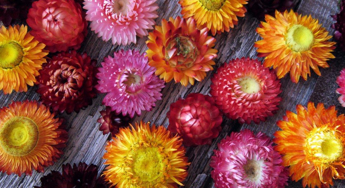Квітка широко відома під назвою бессмертник. Є різних відтінків, від білої до сиреневої. Віддає перевагу родючим і добре дренованим ґрунтам. Погано переносить пере-зволоження. Квіти розцвітають в кінці червня. Правильний час збору матеріалу дуже важливий для тривалого збереження. Найкраще обрізати геліхрізум в самому початку розпускання бутонів, щоб їх декоративність не втрачалась протягом кількох років.