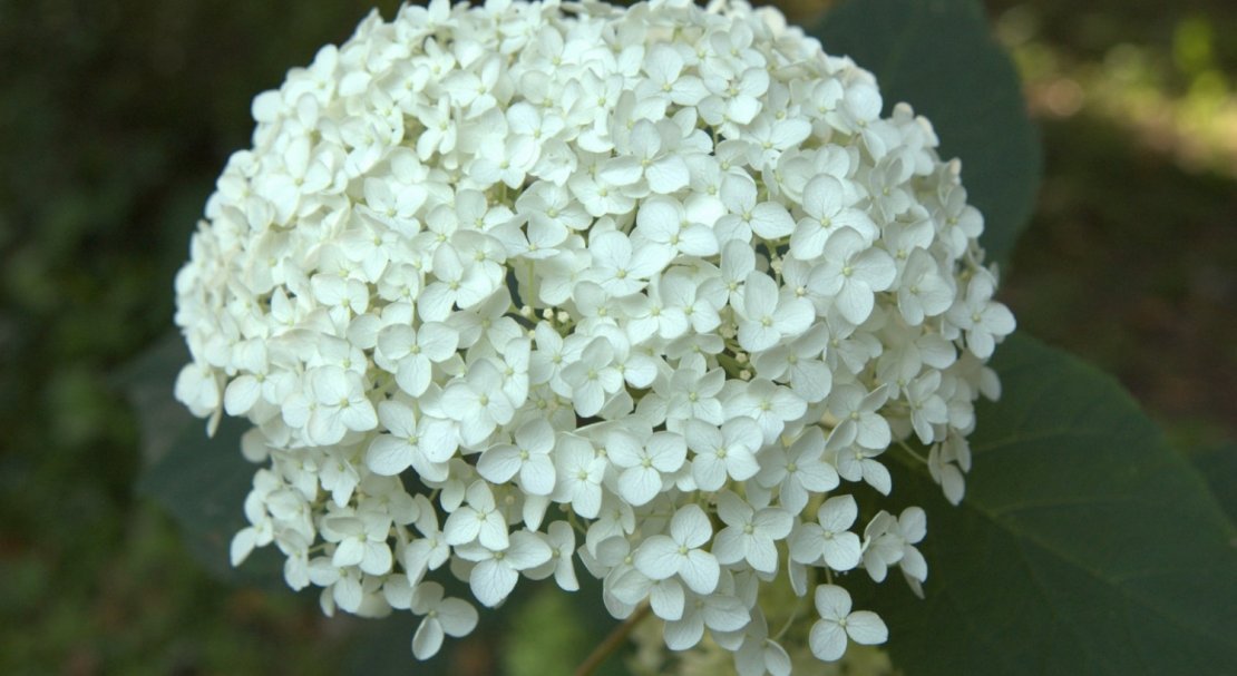 Квітіння відбувається кожного року з кінця червня по жовтень. Квітки утворюють суцвіття 15-25 см в діаметрі та мають форму кулі. Спочатку вони зелені, але з часом збілюються. Витримує температуру до -39°С.