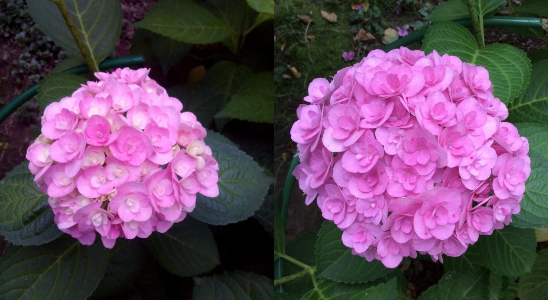 - ступінь рожевого забарвлення квітів варіюється від світлого до насиченого, сорт здатен змінювати кремову палітру від блідо-рожевого до фіолетово-синього в ґрунті з різною кислотністю;