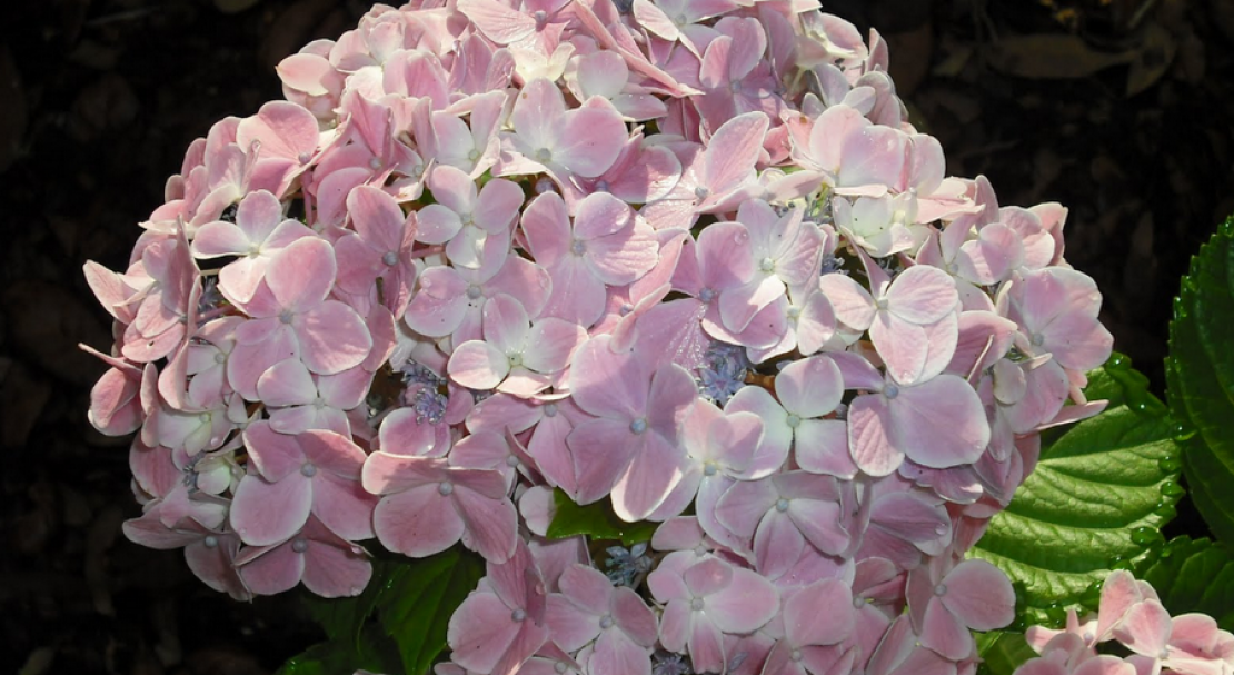 Крупнолистний сорт гортензії Пеппермінт відрізняється від інших розмірами своїх соцвіттів. Окрім того, що вони досить великі, так ще й колір пелюсток змінюється від яскраво-рожевого у центрі до сліпуче-білого на краях. Надзвичайної краси кущ користується великим попитом серед ландшафтних дизайнерів, тому їм часто прикрашають не лише домашні маєтки, але й міські алеї.
