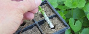 Ємкість ставлять в півтінь і прикривають прозорою плівкою або склом. Поки ростки укорінюються, здійснюють полив та обприскування. Через 3–4 тижні, з появою нових листків, черенки висаджують в окремі горщики і продовжують вирощувати у тіньовому місці. Наступної весни можна починати висаджування в відкритий грунт.