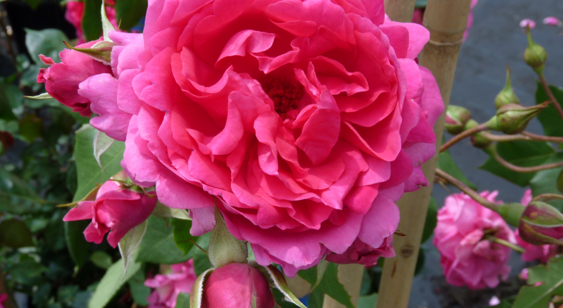 Кущ потужний, сильнорослий, обильноцвітучий. Часто гілки лягають на землю під вагою суцвіть. Квіти яскраво-рожеві, сильномахрові. Зворотна сторона пелюсток блідша.