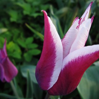 - Black and White. Належать до старовинних сортів пестролистых тюльпанів Рембрандта. Забарвлення пелюсток незвичайний, контрастний. Основний колір ліловий, біля основи квітки має більш насичений відтінок, а ближче до країв світлішає і плавно переходить в чистий білий. Вирощувати даний сорт слід з обережністю, так як при виведенні він був заражений вірусом строкатих листя. Висаджувати його необхідно окремо від інших квіткових рослин, щоб уникнути їх зараження. Тюльпан середньої висоти, близько 60 див. Пелюстки повністю розпускаються при наявності сонячних променів. Цвіте в кінці весни. Висота стебла допускає зріз.