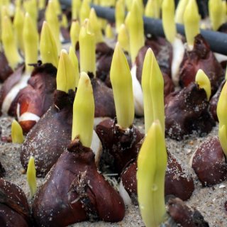 У великі кошики можна висаджувати кілька цибулин з дотриманням відстані між ними. Для тюльпанів це не менше 10 див. також Можна проводити висадку рослин у 2-3 яруси з дотриманням правил глибини посадки. У самий низ висаджують великі цибулини і злегка присипають грунтом. Далі висаджують примірники середніх розмірів і присипають невеликим шаром ґрунту, а зверху — дрібні. Все це засипають і чекають проростання.