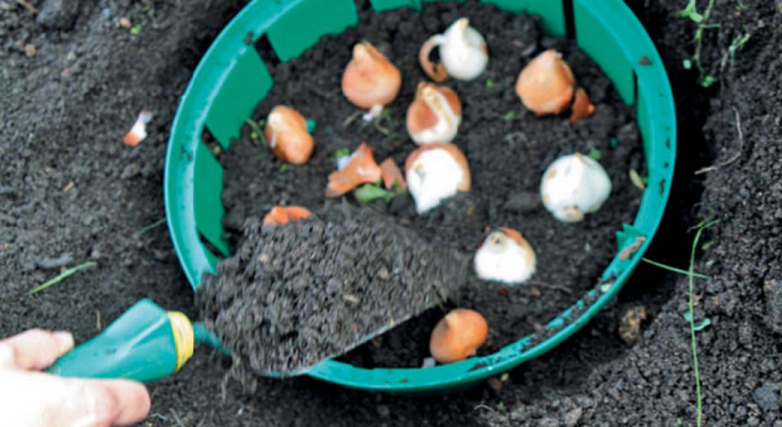 - Викопати грунт, щоб помістити контейнер з цибулинами.