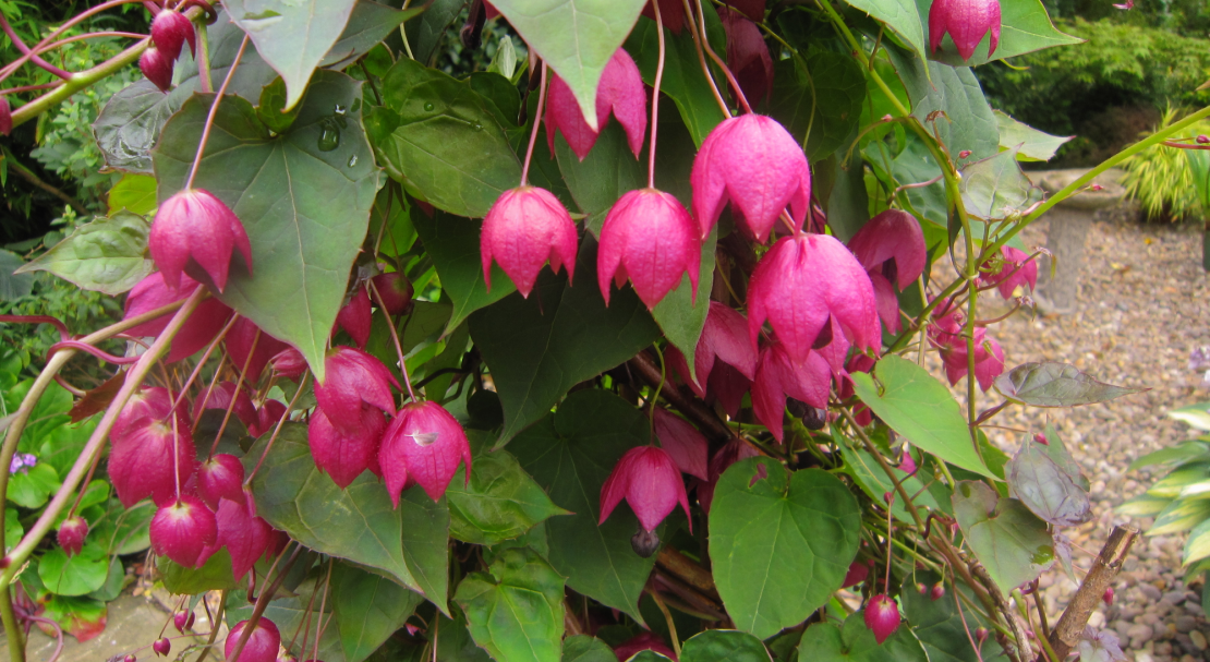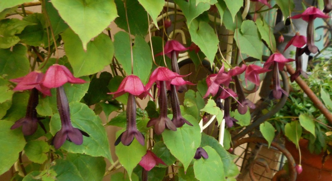 Цвіте в рожево-червоних відтінках. Квіти дзвоникоподібні, листя світло-зелені і волохаті. Він може досягати висоти 7 м, що потрібно враховувати при виборі місця. Родохітон цвіте все літо, навіть до пізньої осені.