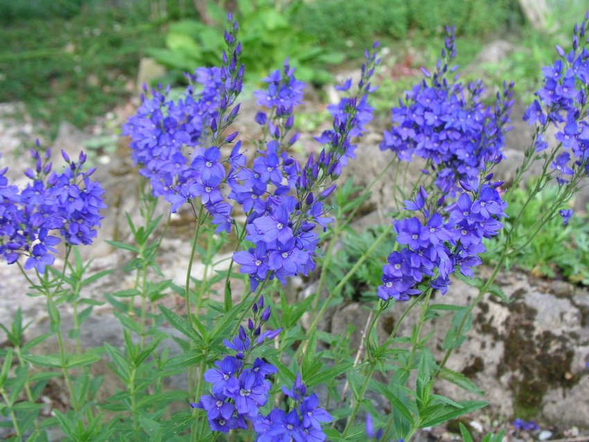 На окремих територіях рослина здатна устилати поверхню землі, забезпечуючи щільне і густий ґрунтовий покрив. Квіти багаторічної вероніки мають блакитний забарвлення, яке іноді доходить до яскраво-синього. Примітно, що, якщо верониці не вистачає вологи, її квіти стають зубчастими. За цим ознакою досвідчені садівники розуміють потреби цієї рослини.
