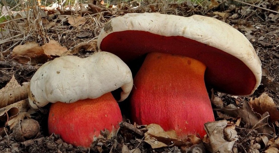 Сатанинський гриб (лат. Boletus satanas) є одним з найпоширеніших отруйних грибів. Його відмінні риси: сіра шапка, кармінно-червоні суперечки і бочкоподібний стебло — червоний в центрі, жовтий біля шапки і внизу біля основи. Зростає з липня по вересень в листяних лісах на вапняному грунті.