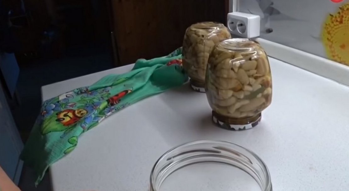 - Стерилізуйте банки і залийте їх маслюками в маринаді.