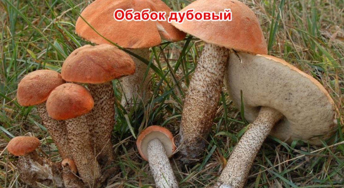 - обабок дубовий — кавово-коричневий капелюшок і такого ж кольору крап на ніжці;