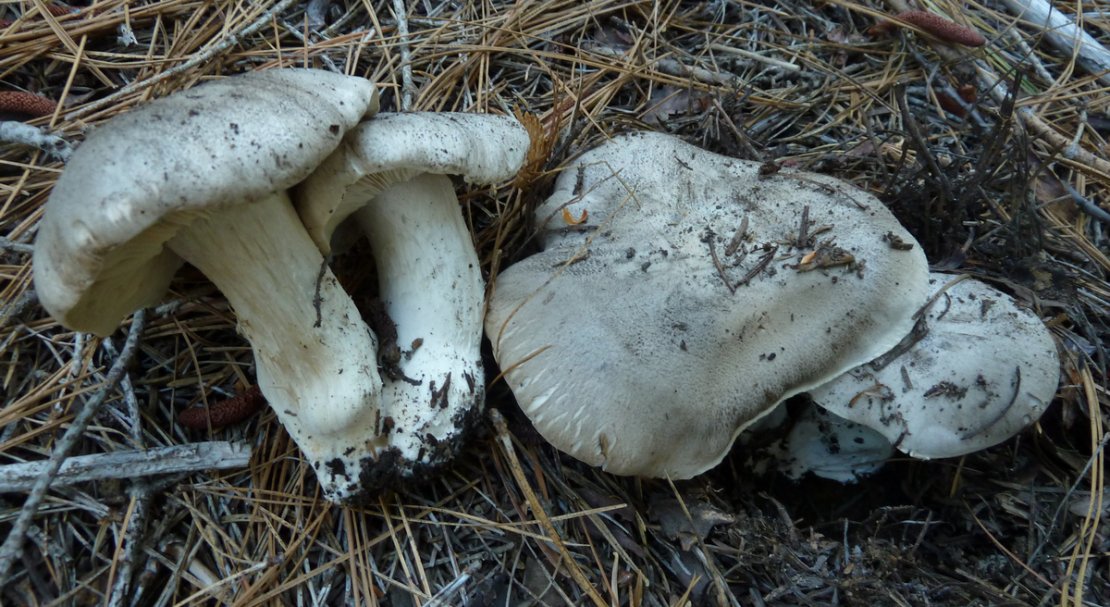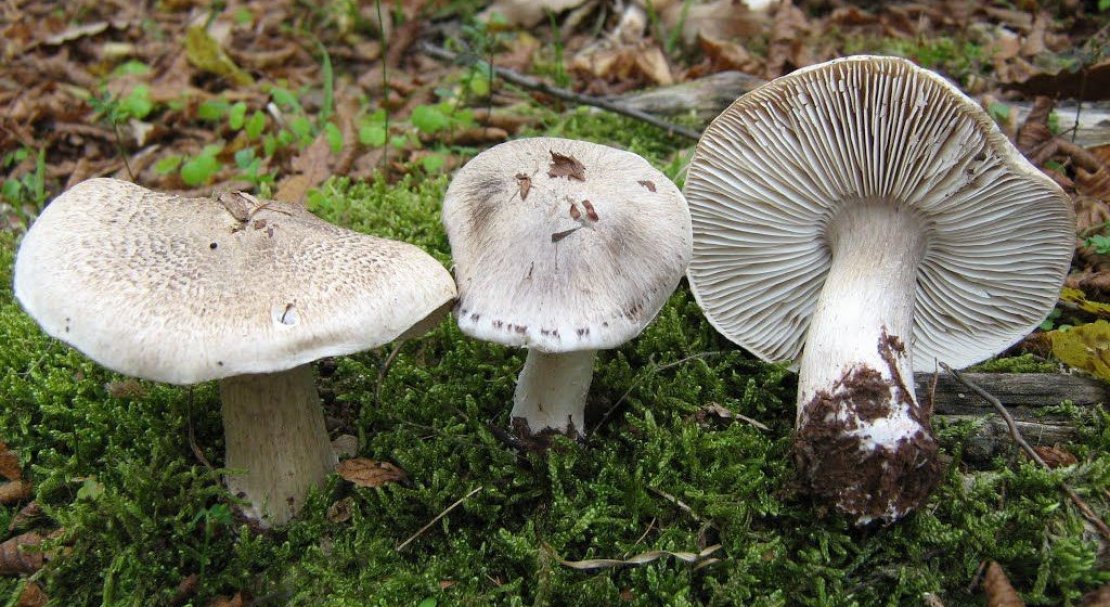 - рядовка землистая — сіро-коричневе забарвлення може бути з червонуватим відтінком, капелюшок опуклий зі звисаючим вниз на ніжку покривалом діаметром до 9 див. Пластинки світлі, прирослі, з виїмками по краю. М'якоть без запаху, ламка, не темніє. Ніжка у формі веретена або циліндра, до 9 см заввишки, біла з жовтим відтінком біля основи;