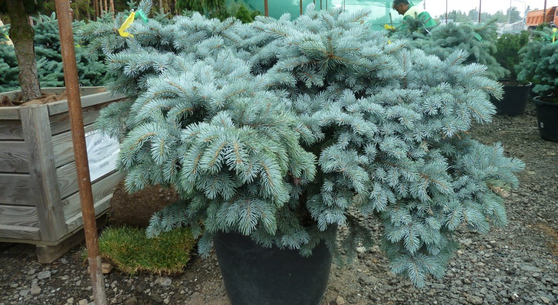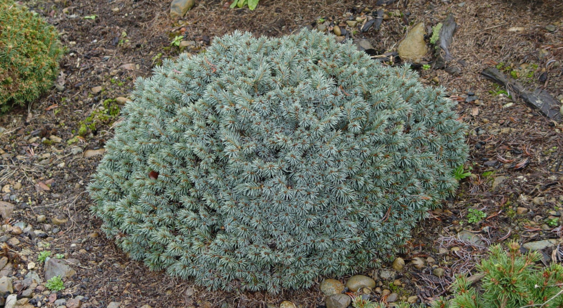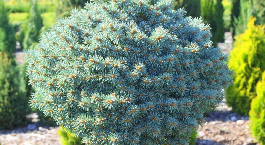 Карликова колючий Глаука Глобоза — широко використовується в альпінаріях і міських садах ялина.