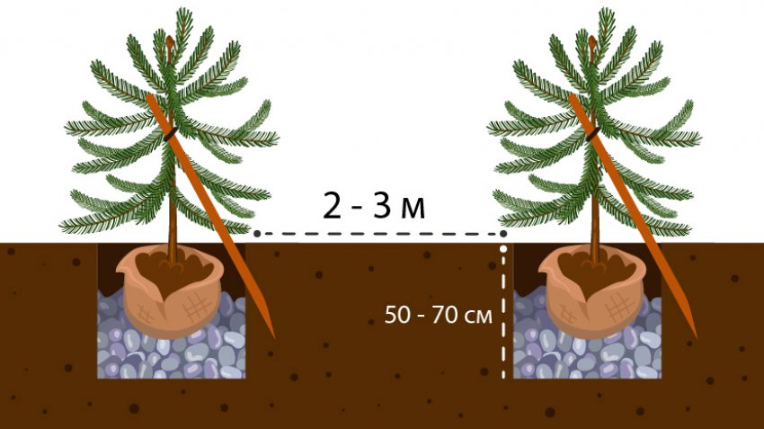 - На вибраному місці слід викопати посадкові ямки (глибина - 0,6-0,7 м, ширина - 1 м) не пізніше ніж за 2 тижні до запланованої процедури. Відстань між сусідніми рослинами - 2,5 м. Якщо ви плануєте зробити живу огорожу, відстань скорочують до 1,8-2 м.