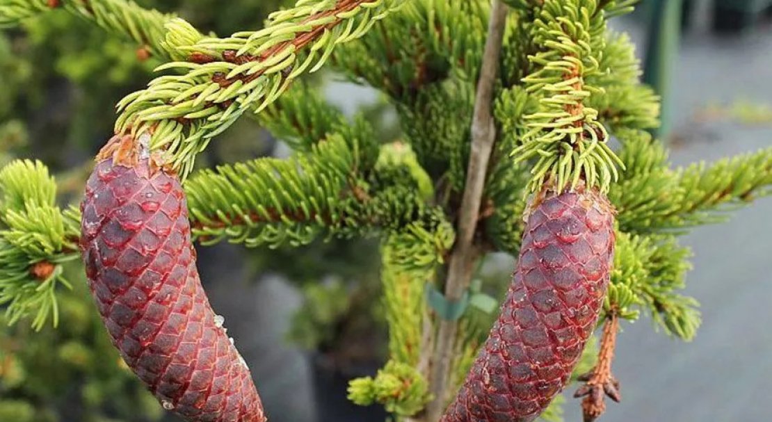 - Плодоношення рясне. Для незрілих шишок характерним є ліловий окрас, а в міру достигання вони стають коричневими.