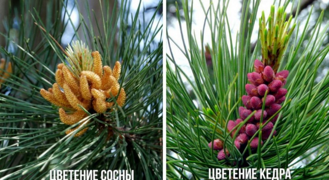 - кедр цвіте в кінці червня, а сосна - в кінці травня;